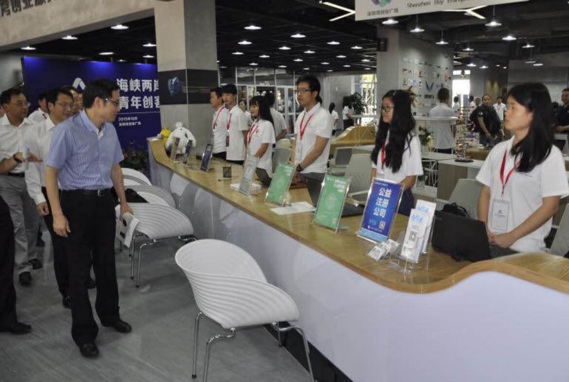 在深圳市委書記馬興瑞(前)的陪同下視察我們在深圳灣創(chuàng)業(yè)廣場服務(wù)大廳